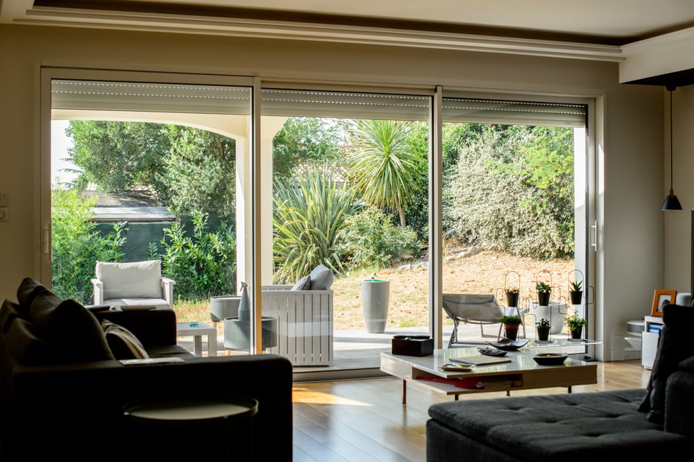Les clients souhaitaient récupérer la lumière entrante dans la maison mais de manière plus efficace, c’est pourquoi dans la partie séjour, un travail d’agrandissement de la baie vitrée a été mené. Effectivement, celle-ci a quasiment doublé en longueur, de 2 mètres 20, elle est passée à 4 mètres 20 au total. De quoi ouvrir l’intérieur sur l’extérieur et profiter de la vue sur le jardin.