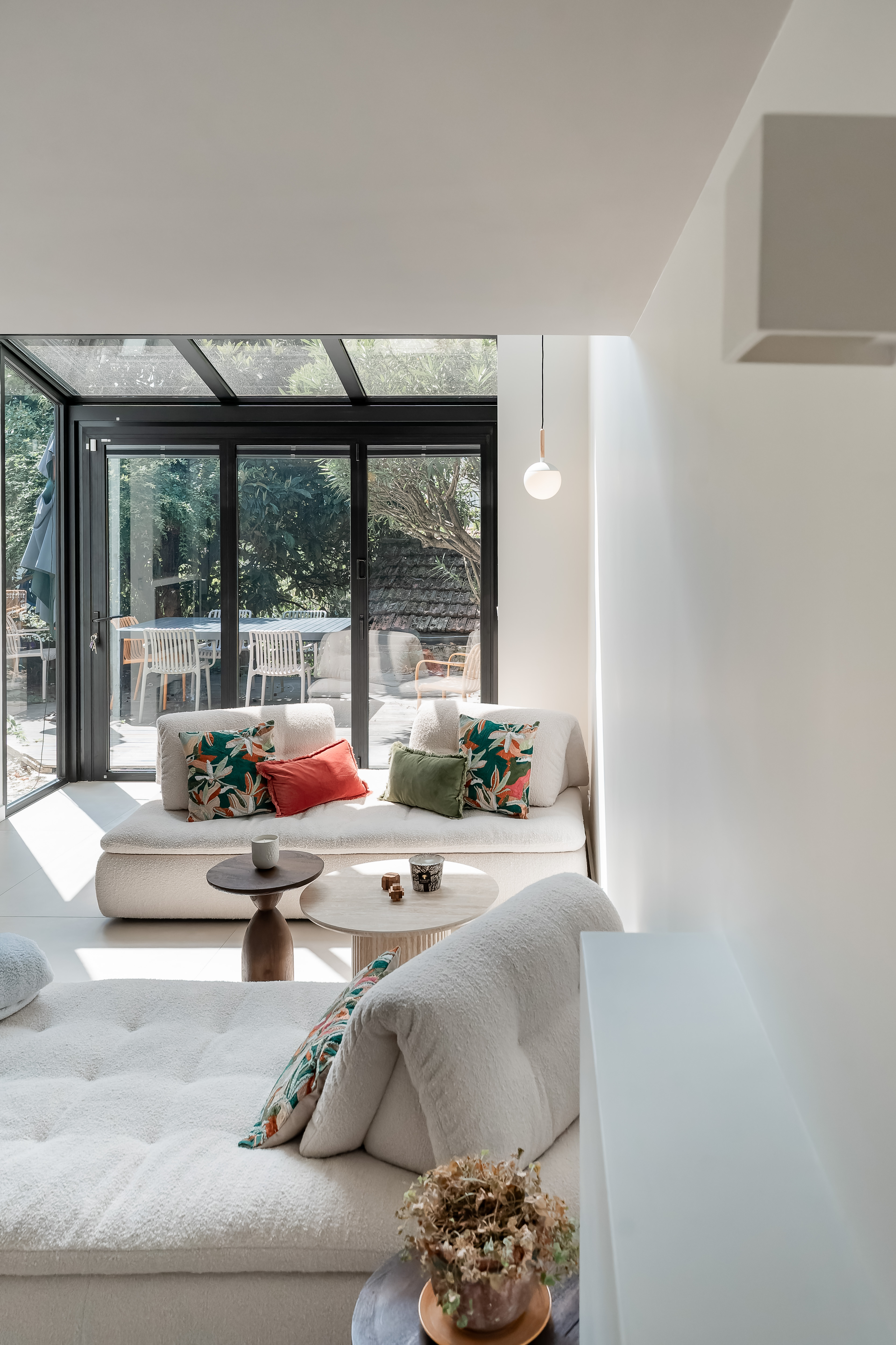 En reprenant intégralement l’isolation, en changeant les menuiseries côté jardin et en installant un plancher chauffant, nous avons redonné à cette maison un confort thermique à la hauteur de son usage. Les propriétaires profitent désormais d’un intérieur chauffé à 19 °C, avec une consommation énergétique divisée par deux. Le confort est devenu la base d’un projet où chaque détail, du sol au mobilier, a été pensé pour moderniser et valoriser l’ensemble.